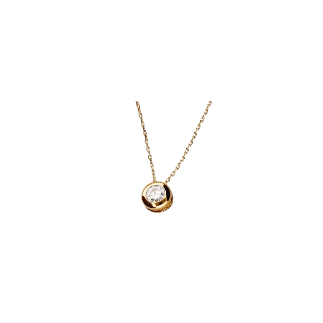 18-carat yellow gold choker (750mm) with 4.72 mm embedded zirconia bezel. 42 cm forxat chain with spring ring clasp.