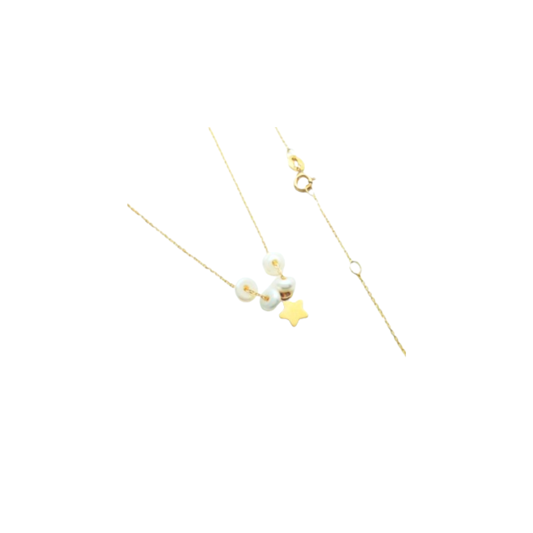 18-karat yellow gold choker with a star pendant and four flat freshwater pearls. 40-42 cm Forxat chain, two positions. Spring-ring closure.