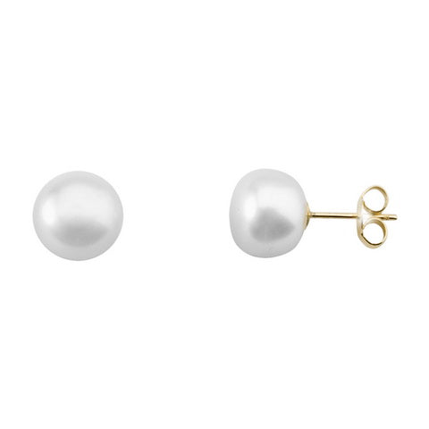 18K gold earrings with 9mm cultured river pearl with pressure closure.