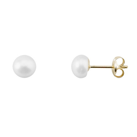 18K gold earrings with 5mm cultured river pearl and pressure closure.