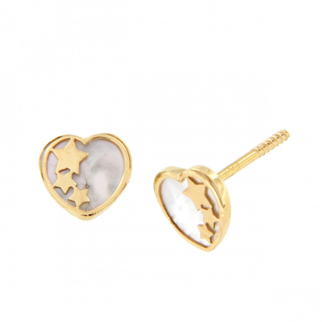 Add a charming touch to your little one's look with our 18K yellow gold (750mm) stud earring in the shape of a sparkling flower, enhanced with a delicate 6.33mm mother-of-pearl inlay. Featuring a convenient screw-back closure, this earring is the perfect choice to enhance her charm with style and security.