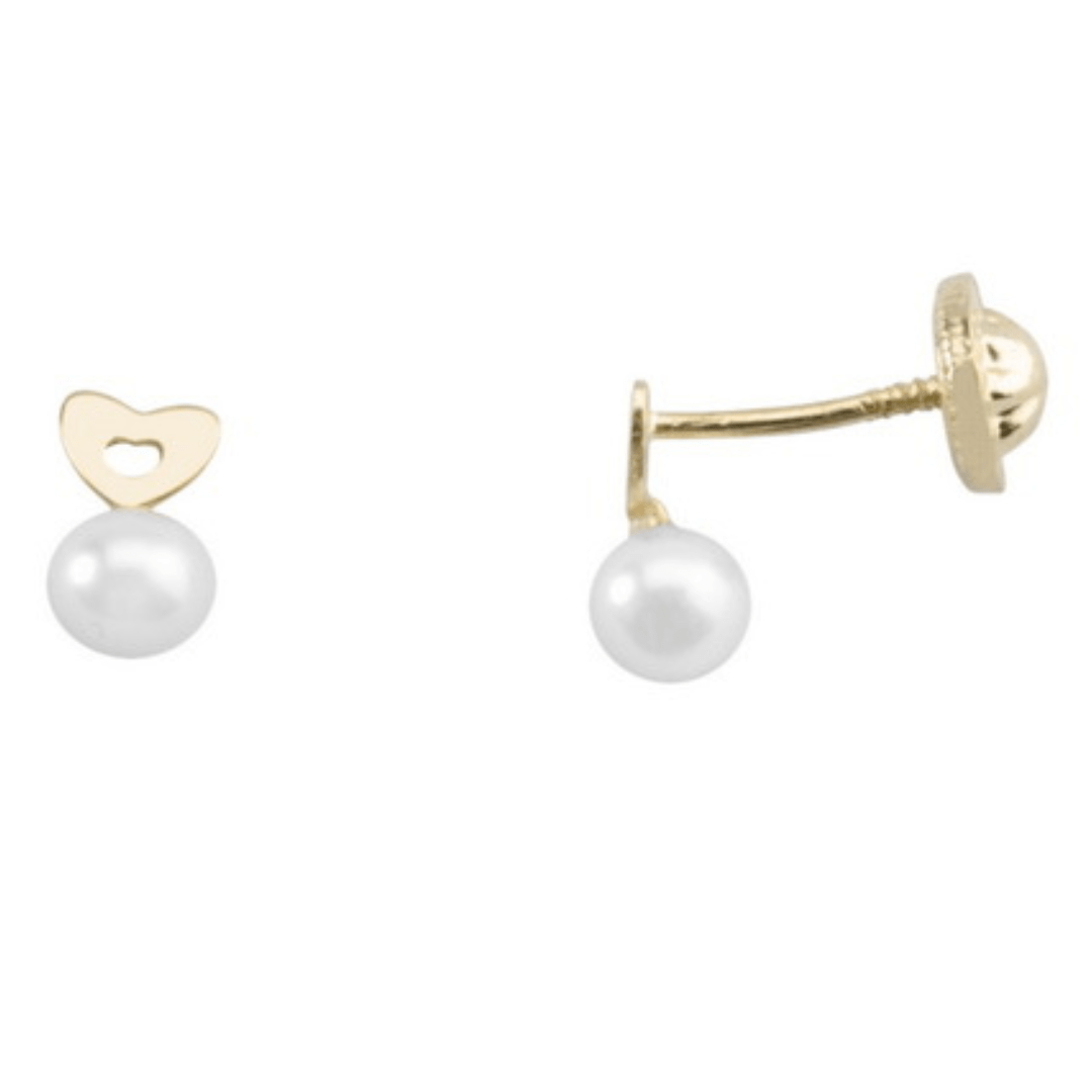 18-carat (750mm) yellow gold earrings in the shape of a heart with zirconia and a 4mm mini cultured pearl. Screw closure.
