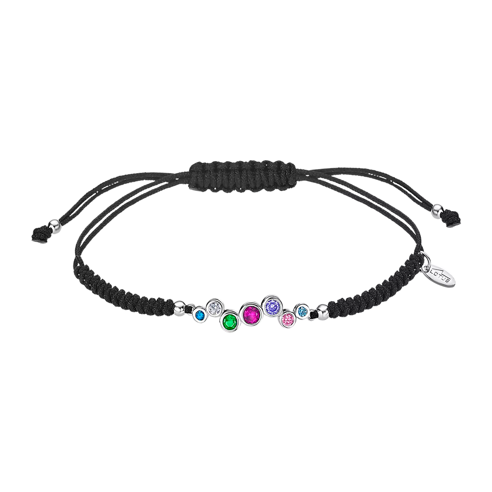 925mm rhodium-plated sterling silver bracelet from the Funny collection, with mint green macramé cotton thread and silver and enamel decoration with a blue and yellow star. Adaptable to all sizes, with a sliding knot.