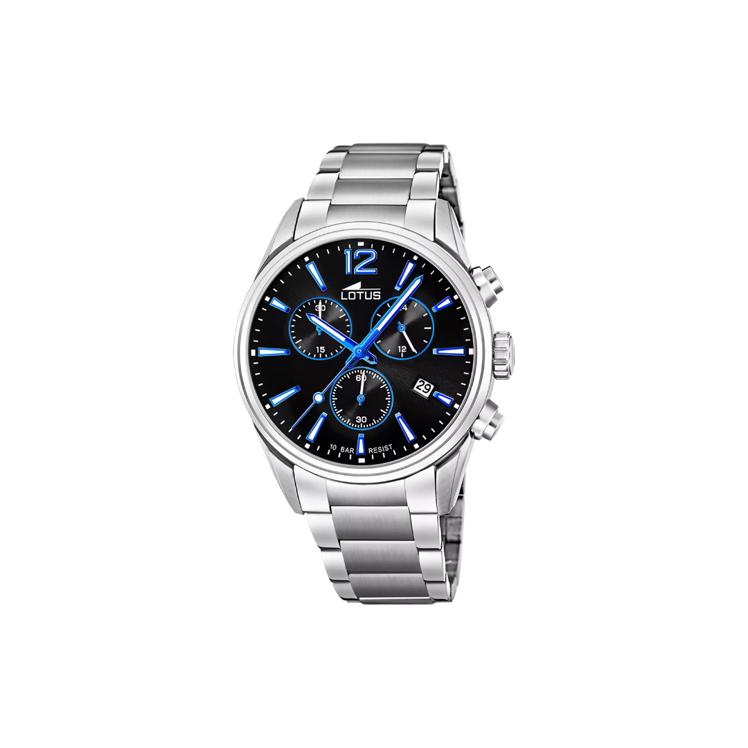 The Lotus 15197/1 men's watch is a stunning piece with its 37.50 mm steel case and magnifying mineral crystal, and a steel strap. In addition to its exclusive design, Lotus watches are designed to meet the needs of a contemporary, urban and modern audience.