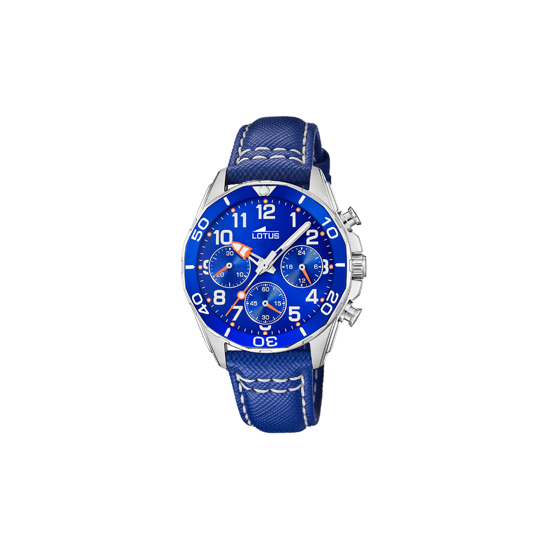 The Lotus 18581/6 watch is perfect for kids. It features a 316L stainless steel case and 36.0 mm mineral crystal, as well as a two-tone fabric strap, blue and orange. Lotus watches are known for their exclusive and cutting-edge designs, ideal for a contemporary, urban and modern audience. Make your child feel special with this high-quality watch!