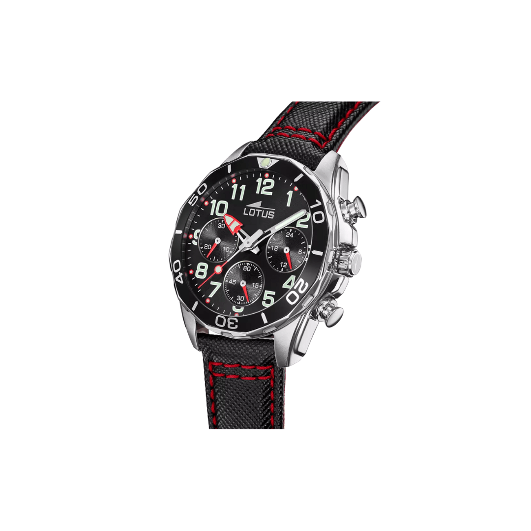 The Lotus 18581/6 watch is perfect for kids. It features a 316L stainless steel case and 36.0 mm mineral crystal, as well as a two-tone fabric strap, blue and orange. Lotus watches are known for their exclusive and cutting-edge designs, ideal for a contemporary, urban and modern audience. Make your child feel special with this high-quality watch!