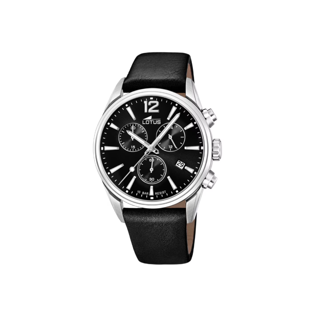 The Lotus Chrono Black Watch is the perfect combination of modernity and functionality. With its stopwatch and calendar, you can keep accurate track of time at all times. Its black dial and leather strap make it elegant and comfortable, ideal for any occasion. Make every moment count with this essential accessory!