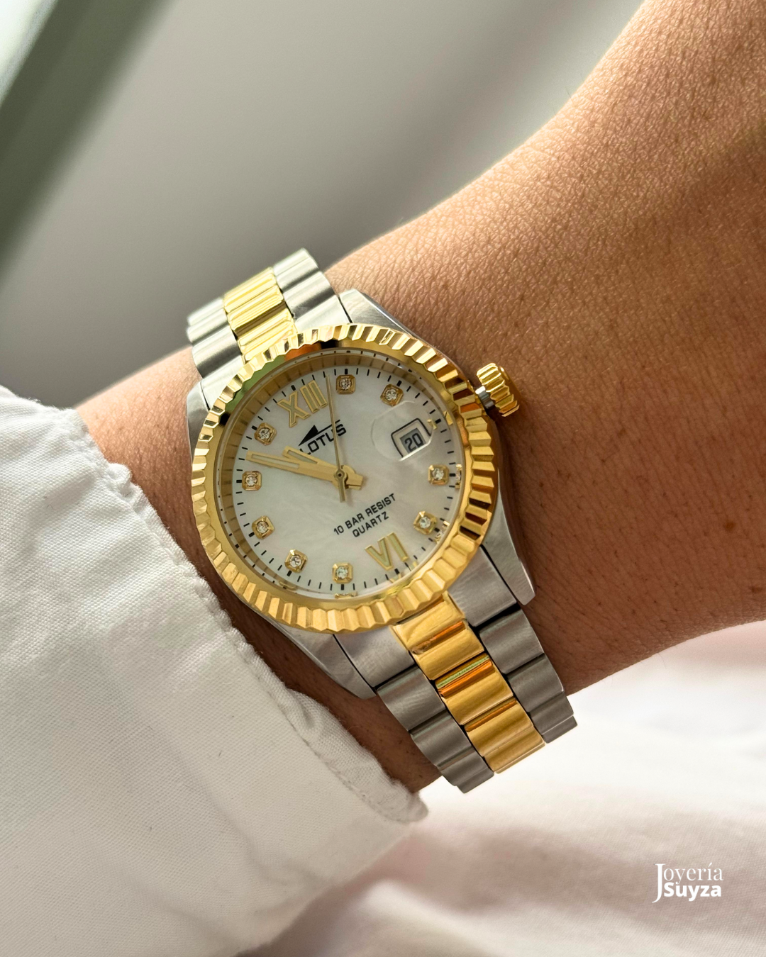You won't be able to resist the Lotus Freedom Bicolor Women's Watch! With its elegant mother-of-pearl dial and cubic zirconia, it's perfect for a casual or elegant look. Surprise your mom or any special woman in your life with this versatile watch that will surely amaze her.