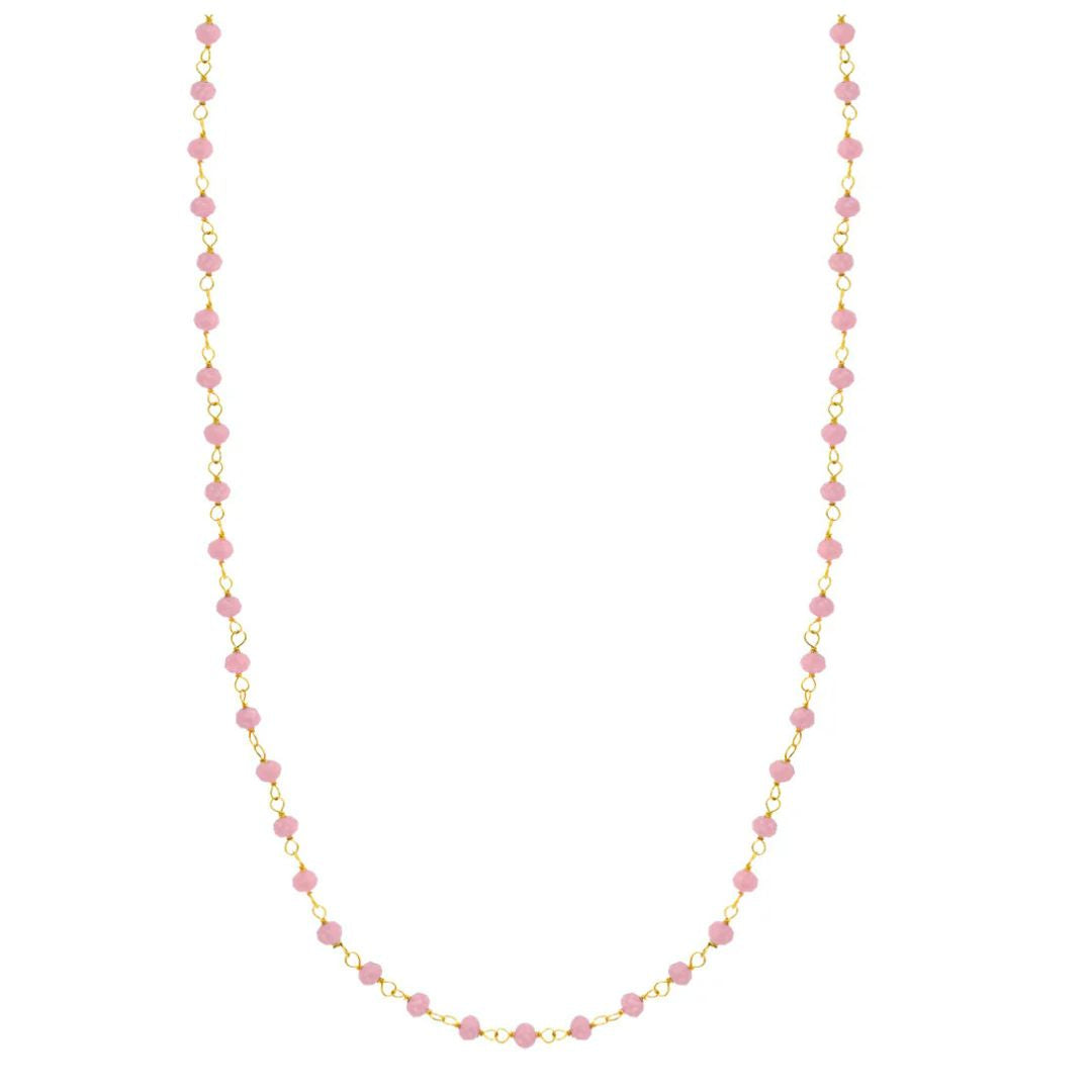 Gargantilla plata de ley 925 mm con baño chapado en oro de 18kt formada por 46 piedras rosas facetadas de 3.5mm Cadena de anillas abiertas de 42 cm y extensible de 3cm. Cierre de áncora.