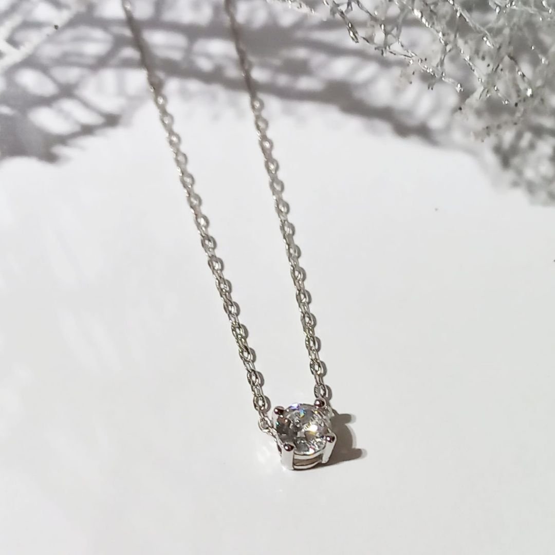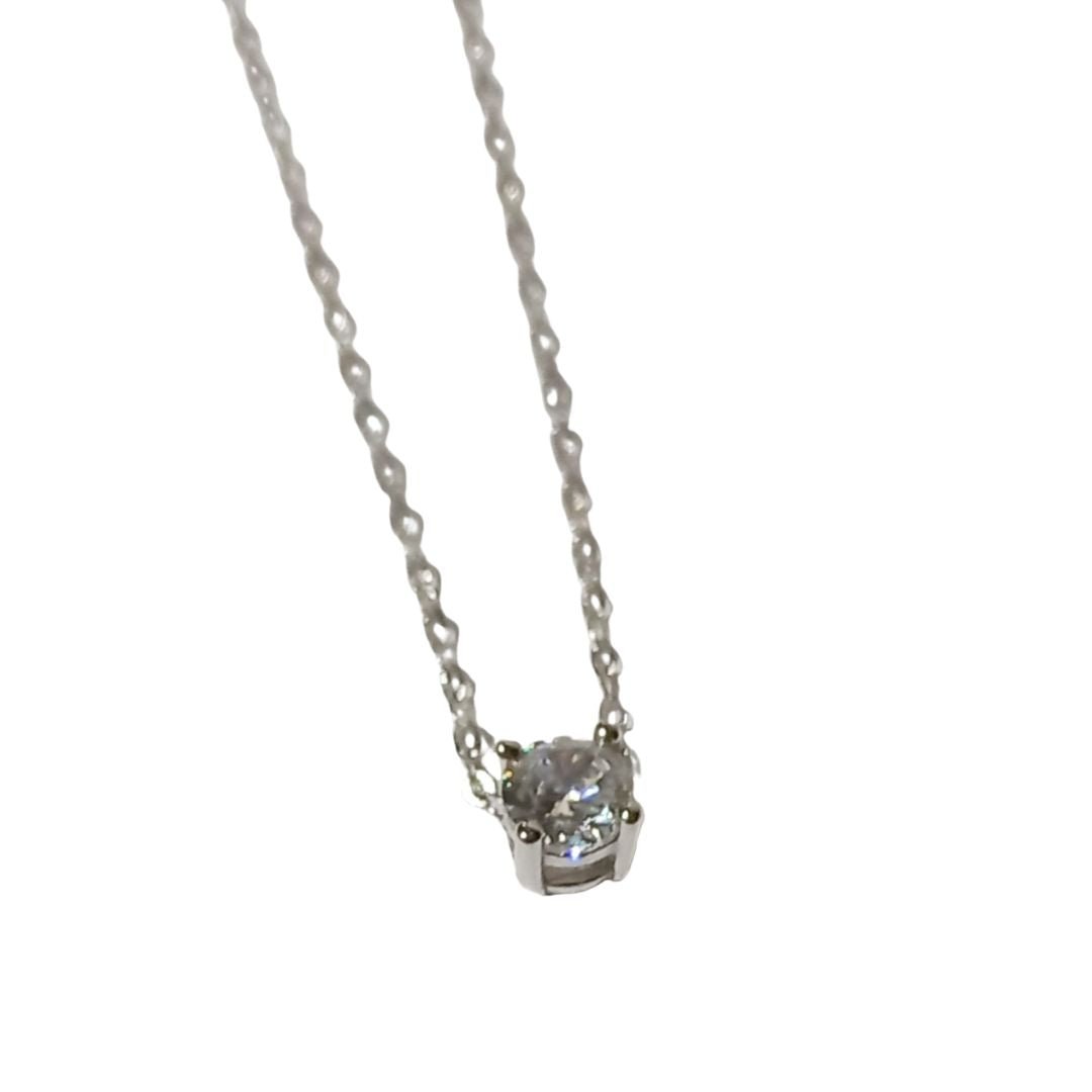 Gargantilla plata de ley 925 mm con baño de rodio con colgante chatón con circonita de 5mm y cuatro garras. Cadena malla forxat de 42 cm y extensible de 3cm. Cierre de áncora.