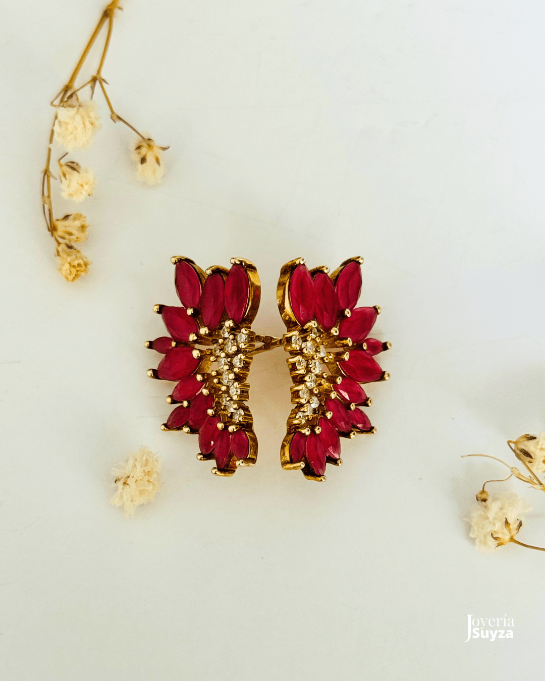 Estos preciosos pendientes en plata chapada en oro 18k con granates y circonitas en forma de abanico, son ideales para cualquier ocasión. Con su diseño elegante y llamativo, serás el centro de todas las miradas. Perfectos para un lookazo o para brillar en el día a día. ¡No podrás resistirte a ! y si son para mamá , le van a encantar !