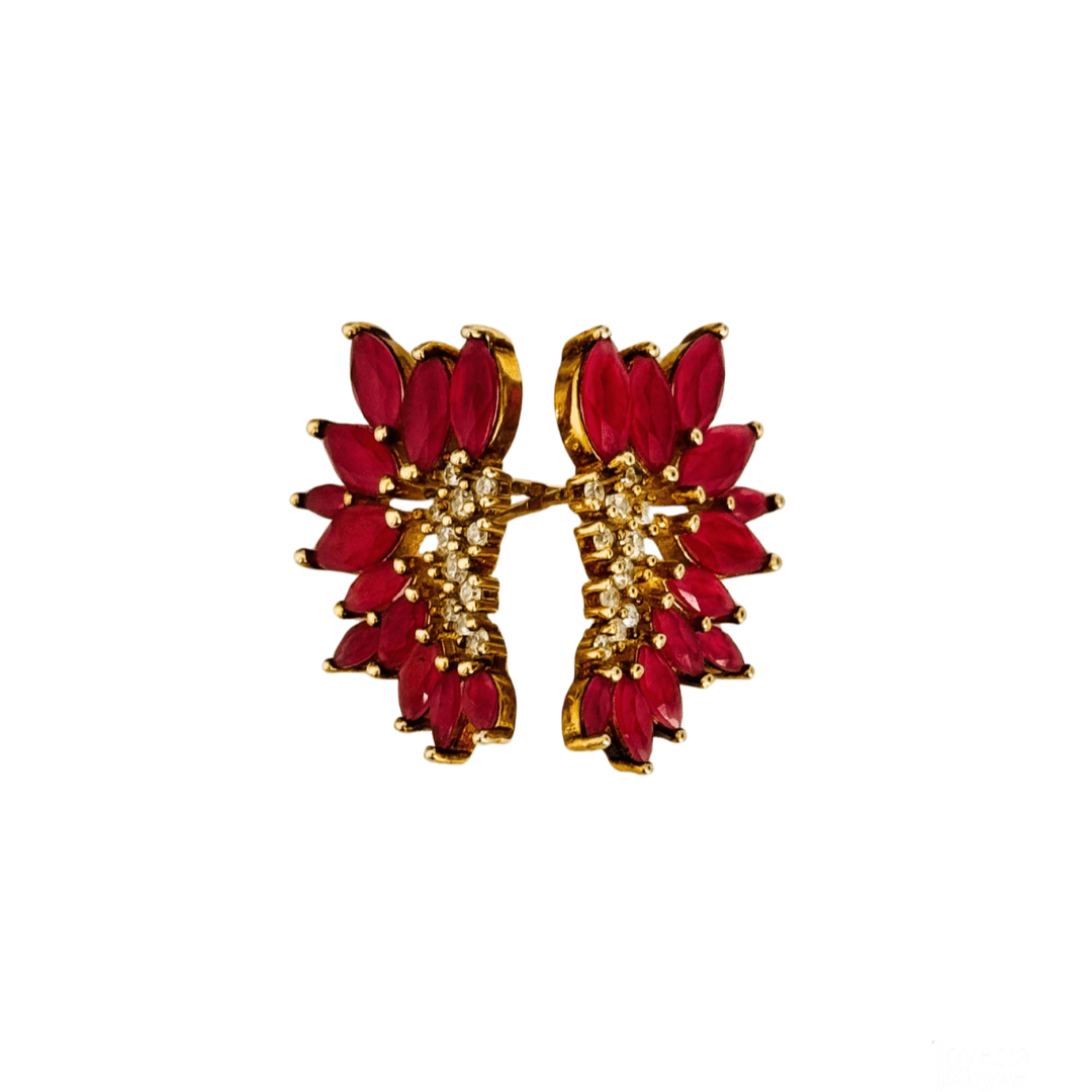 Pendientes en plata 925mm chapados en oro 18k con precioso diseño en forma de abanico con granates y circonitas. Cierre de presión.