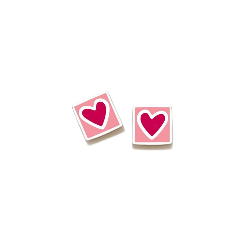 Pendientes plata de ley 925 mm cubo con esmaltes de colores en tono rosa con corazón fucsia de 5 mm. Lleva cierre de presión, original y divertido pendiente para tu pequeña.