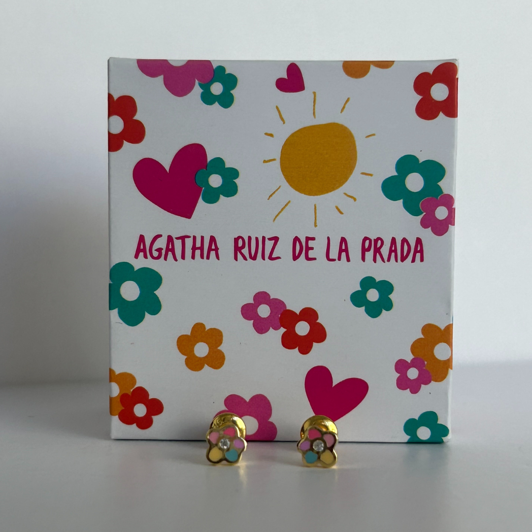 Encuentra la alegría en cada día con nuestros hermosos pendientes de Agatha Ruiz de la Prada. Creados con un diseño de flor en plata chapada en oro con esmaltes en tonos pastel, con circonita ,estos pendientes son el regalo perfecto para ti o para alguien especial. Agrega un toque de color y dulzura a cualquier atuendo con estos pendientes tan divertidos. Como llevan cierre de rosca, son ideales para mamá y también para la peque. Mami, cuando los veas te encantarán.