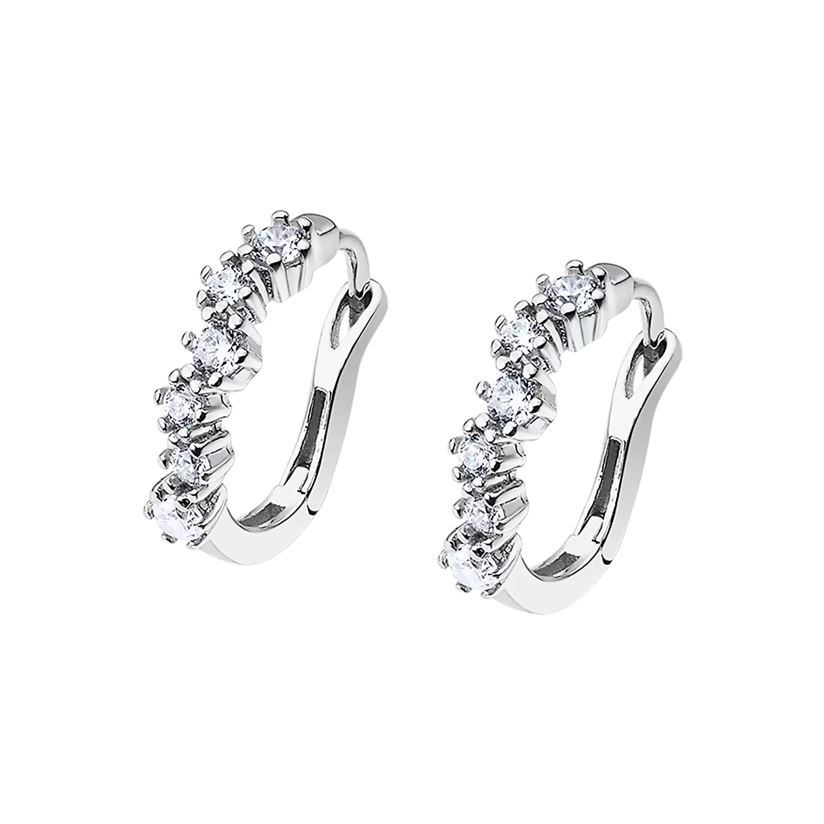 Pendientes en plata de ley 925mm de la colección Lotus Silver con baño de rodio, modelo aro con 6 circonitas blancas engastadas con forma de ondas. Tamaño 15mm.Cierre catalán.