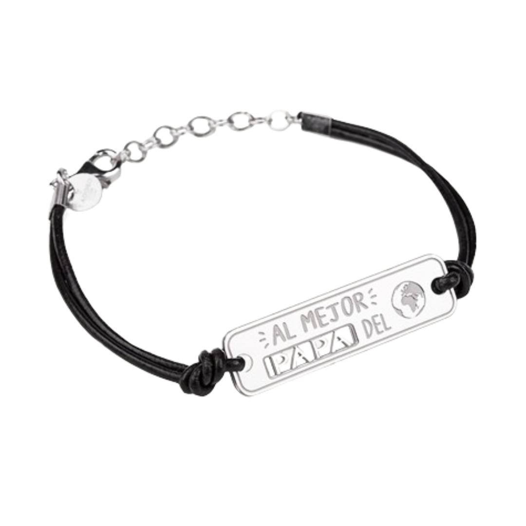 ¡Dedícale esta pulsera de plata a papá y dile cuánto lo quieres! Con su mensaje personalizado "Al mejor papá del mundo", este regalo lo emocionará y lo hará sentir especial. ¡Demuéstrale tu amor y agradecimiento con este detalle único!