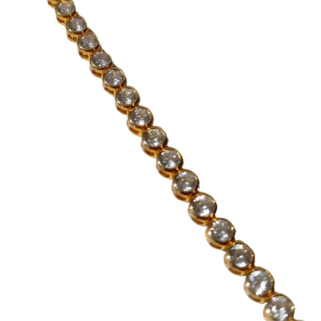 Pulsera plata de ley 925 mm con baño chapado en oro 18Kt modelo riviere con 44 circonitas de 4mm. Lleva cierre de caja con dos cierres de seguridad. Medida 19 cm. Pulsera elegante y preciosa para mami.